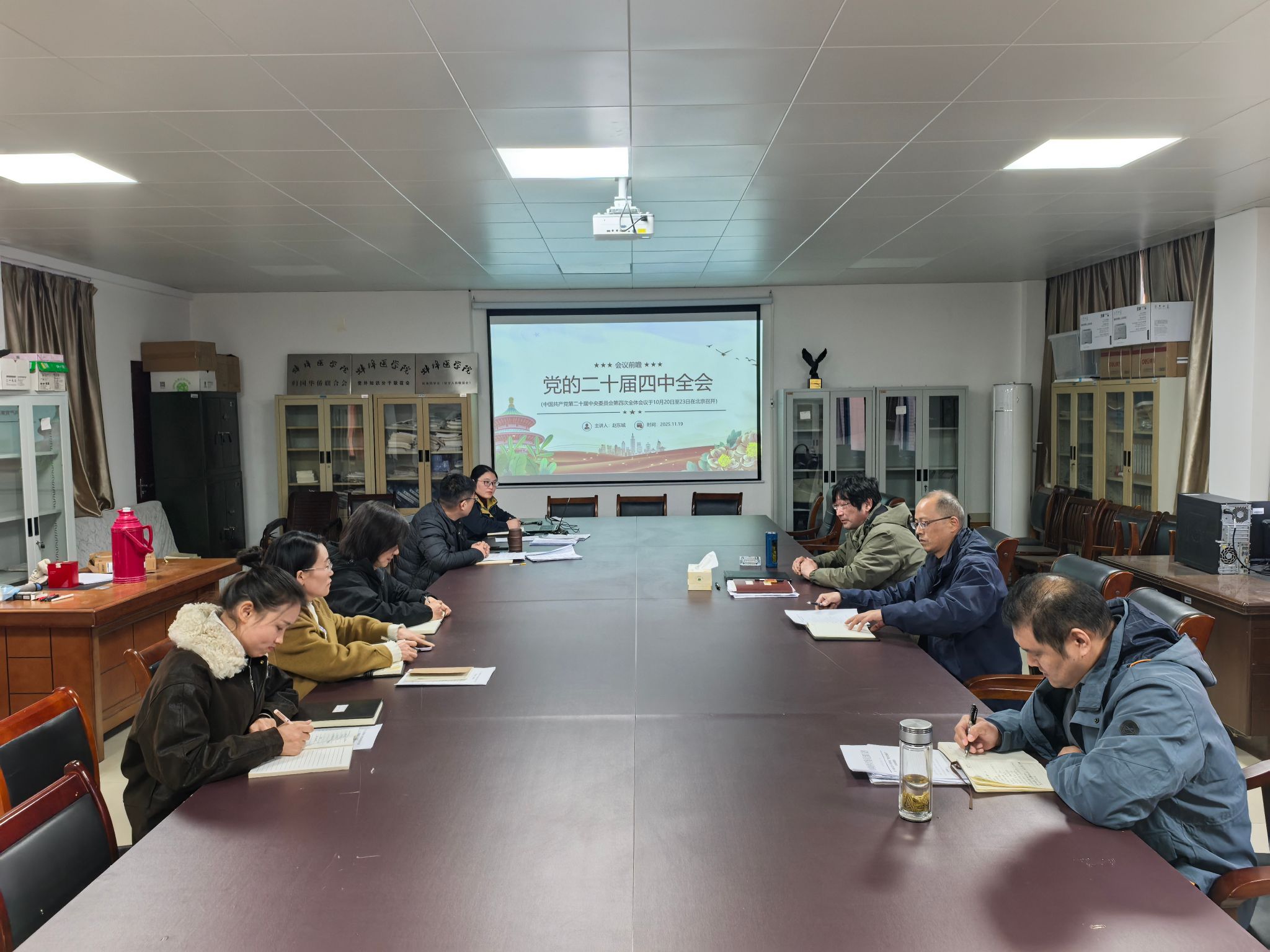 11月19日下午,组织统战部党支部召开专题学习会,深入学习党的二十届四中全会精神。会议由党支部书记赵东城主持,支部全体党员参加。