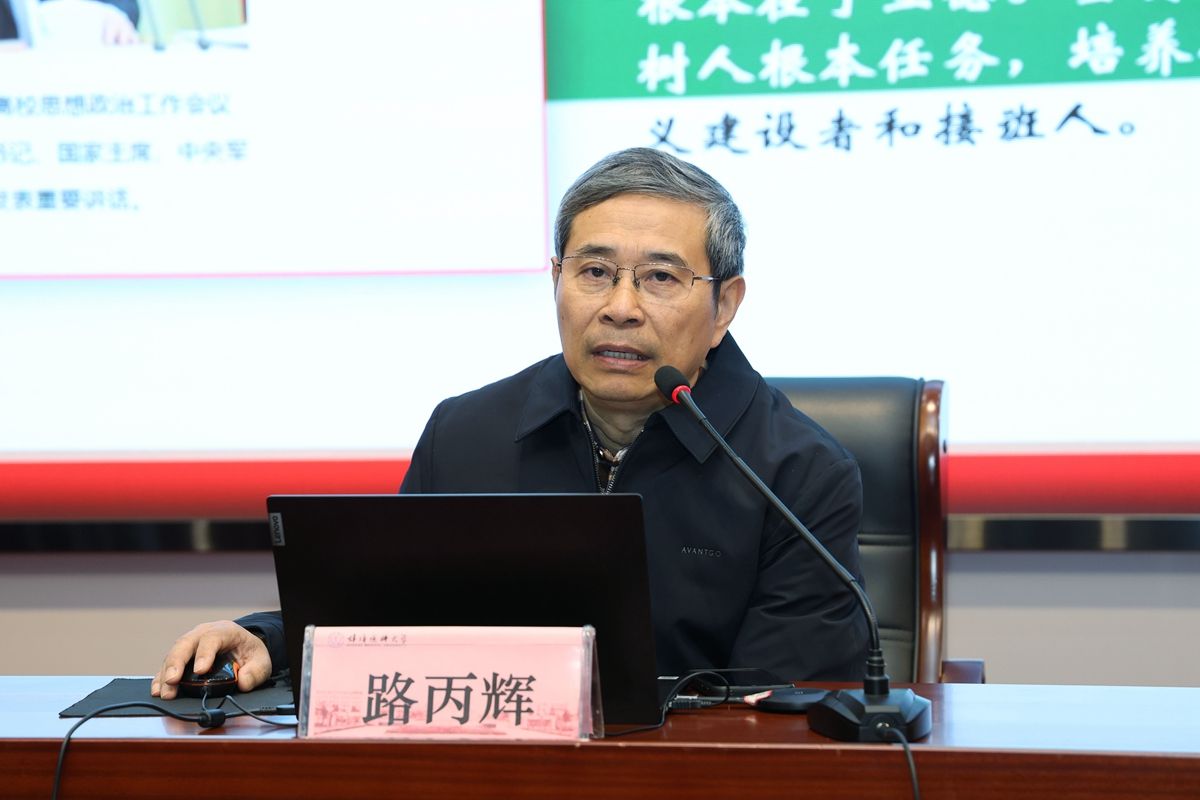 郑兰荣强调,2025年是“十四五”规划收官之年,是贯彻落实习近平总书记考察安徽重要讲话精神的关键一年,也是建设国内一流、国际知名高水平医科大学的重要一年,做好今年和下一阶段学校思想政治工作意义重大,影响深远。要担当作为、狠抓落实,进一步加强党对意识形态工作的领导、师生思想政治理论武装,加强思想政治工作阵地和校园文化、思政工作队伍建设,全力以赴做好新形势下学校思想政治工作。始终坚持正确政治方向、政治立场、思想方法,始终坚持围绕中心、服务大局,开拓创新、锐意进取,不负重托、不辱使命,努力开创我校思想政治工作新局面,为奋力谱写中国式现代化安徽篇章贡献蚌医力量。