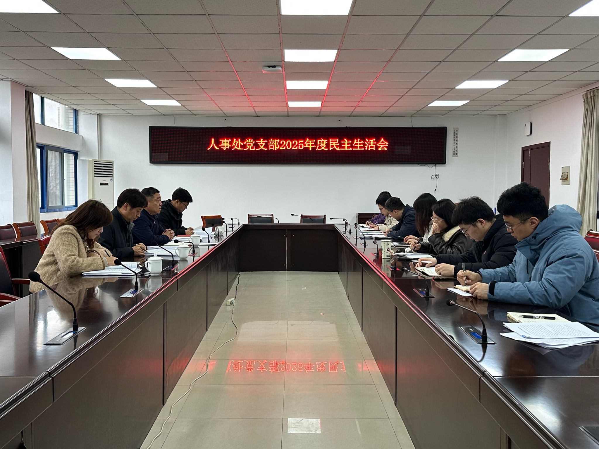 3月16日上午,人事处党支部在办公楼1号会议室召开2025年度处级党员领导干部民主生活会。机关党委委员、学报编辑部主任姚仁斌到会督导,支部全体党员参加会议,会议由党支部书记金世洋主持。